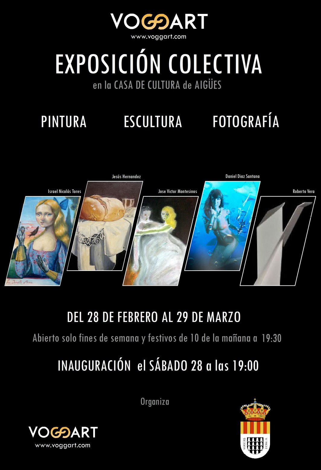 El Ayuntamiento de Aigües presenta la I Exposición Colectiva de Artistas de VOGGART con fotografía, pintura y escultura. Una fusión de estilos desde la abstracción geométrica hasta el bodegón clásico, pasando por la pintura fantástica y la imagen digital.